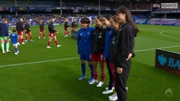 直播吧03月28日讯 英女超第19轮,埃弗顿女足vs利物浦女足,赛前双方球员为5名在各自球队效力的日本女足国脚列队。